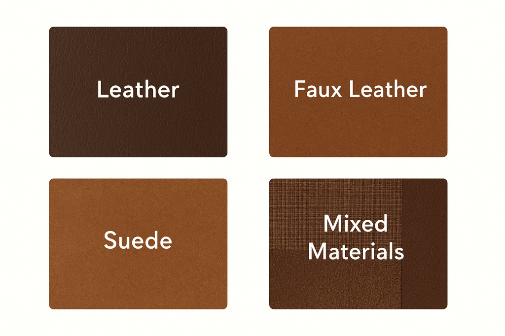 - Faux Leather – Great if you’re looking for budget-friendly or vegan options. Many are so well made now they look just like the real thing.