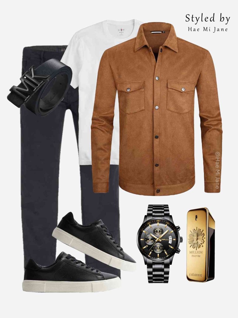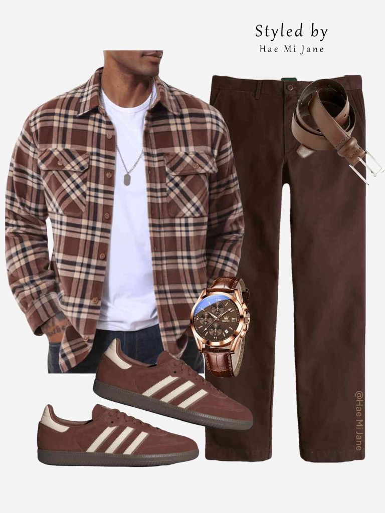 Occasion: Autumn festivals. This men’s fall fashion staple uses a tan and brown palette to create a warm, intentional vibe for the cooler months.